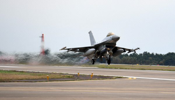 [공군 20전투비행단] 항공작전 임무를 위해 이륙하는 KF-16 전투기 / 충청뉴스 최형순 기자