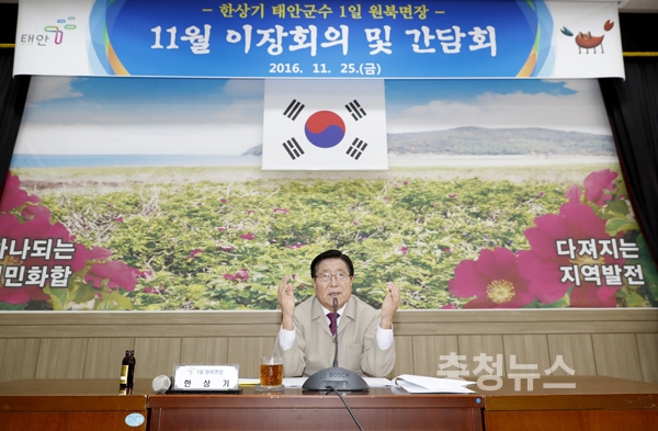 한상기 태안군수가 지난 25일 ‘1일 원북면장’으로 깜짝 변신해 현장 구석구석을 돌아보고 군민의 애로사항을 청취하는 시간을 가졌다.