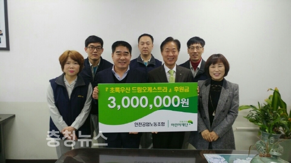이번 후원금은 초록우산어린이재단에서 11월 29일(화)에 진행하는 ‘제3회 초록우산 드림오케스트라 정기연주회’를 맞이하여 안전공업(주) 노동조합 임직원 300여명이 십시일반 후원금을 모아 아이들의 문화예술 활동을 지원하기 위해 마련되었다.