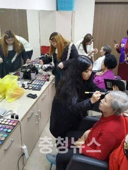 헤어·메이크업을 전공하고 있는 뷰티과 재학생 10명과 교수 1명이 함께 참여해 어르신들의 건강하고 아름다운 모습을 연출하기 위해 그 동안 배운 실무 능력을 적극 활용했다.