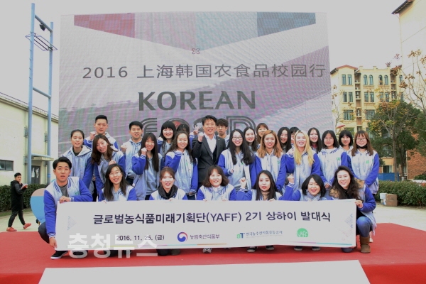 상하이 YAFF은 현지 유학생 25명으로 구성되어 있으며, 한 해 동안 식품박람회 진행요원 및 통역, 한국식품 SNS 홍보 등 aT의 다양한 업무를 함께 진행해왔다. 이번 프로젝트와 함께 aT에서는 상해외대 한국어과 학생 25명을 새로이 YAFF 2기 회원으로 맞이하였으며, 행사 이튿날인 11월 25일 위촉장을 수여하는 등 2기 발대식도 개최하였다.