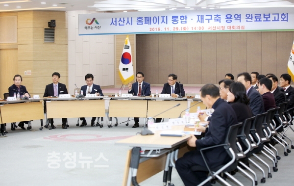 시는 29일 시청 대회의실에서 이완섭 서산시장을 비롯해 국·단장, 직속기관장, 실·과·소장 등 간부공무원 70여명이 참석한 가운데‘서산 홈페이지 통합·재구축 용역’ 완료보고회를 열었다.