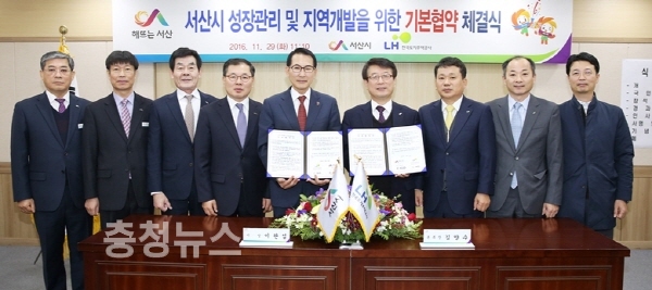 한국토지주택공사(대전충남지역본부장 김양수)는 11.29일 서산시청에서 서산시(시장 이완섭)와「서산시 성장관리 및 지역개발 기본협약」을 체결했다.