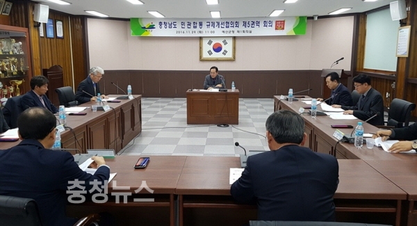 충남 예산군은 지난 29일 군청 제1회의실에서 ‘충청남도 제5권역(예산·홍성·청양) 민관합동 규제개선협의회’를 개최했다고 밝혔다.