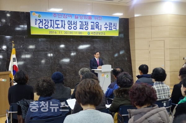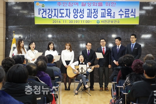 서천군보건소(소장 김재연)는 30일 보건소 주민건강센터에서 건강지도자 양성과정을 이수한 56명에 대한 수료식을 가졌다.