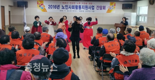 식전공연으로 단전호흡, 농악교실, 이영화씨의 창극과 김하희 가수의 노래 등 다채로운 공연이 펼쳐졌으며, 일자리사업 참여로 지쳐있던 어르신들 심신을 위로했다.