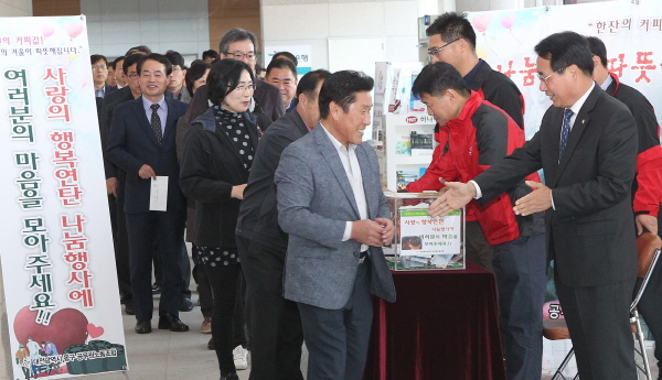 ‘한 잔의 커피값! 우리의 이웃이 따뜻해집니다’를 캐치프레이즈로 펼쳐진 이번 모금에는 주민 등이 1117만 원을, 동구청 직원들은 노동조합 회비 500만 원 포함 총 1018만 원의 정성을 보탰다.