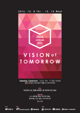 ‘2016 아트큐브 페스타 <Vision of Tomorrow>’ 축제가 12월 8일부터 14일까지 7일간 천안 원도심 명동거리 일원에서 열린다.
