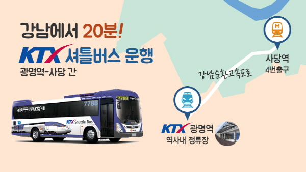 앞으로 KTX 광명역과 서울 사당 간 직통 셔틀버스가 운행되면, 서울 남부지역에서 광명역을 통한 전국 여행이 훨씬 편리해질 전망이다.