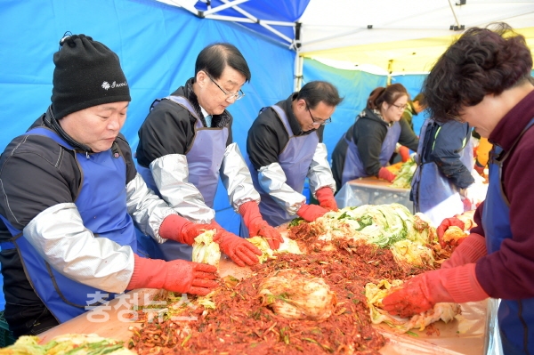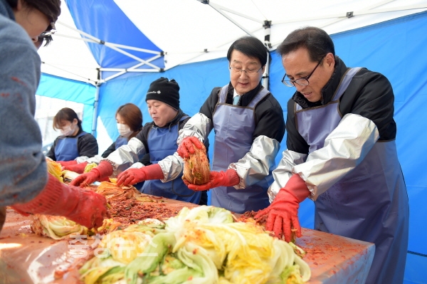 공사 임,직원 20여 명 참석 아담의집 가족들의 겨울나기 1,000포기 김장 해