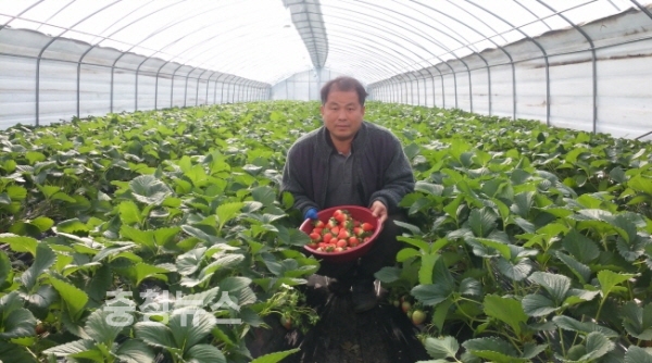 충남 청양군은 겨울철 기온이 낮아 식감이 아삭하고 당도가 높은 고품질 딸기 생산으로 농가소득을 올리고 있다.