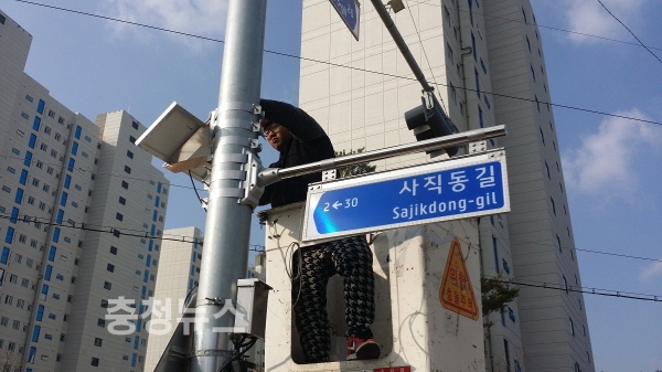 주간에 태양광을 충전해 야간에 별도의 전력 없이 조명을 밝힐 수 있는 친환경적인 방식으로 설치된 LED 도로명판은 한번 충전으로 3~4일 동안 밝힐 수 있으며 보행자 눈에 잘 띄도록 설치됐다.