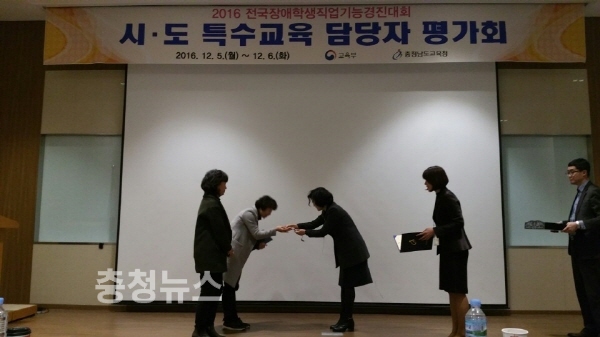 충남도교육청(교육감 김지철)은 5일부터 6일까지 부여롯데리조트에서 교육부 및 국립특수교육원, 17개 시ㆍ도교육청 특수교육 담당자 90명이 참석한 가운데 2016 전국장애학생직업기능경진대회 시ㆍ도 담당자 평가회를 가졌다.