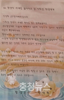박득남씨는 “이석화 군수의 답장이 희진이가 국가대표 꿈을 확고히 하는 계기가 됐으며 지금도 잘 간직하고 있다”고 덧붙였다.