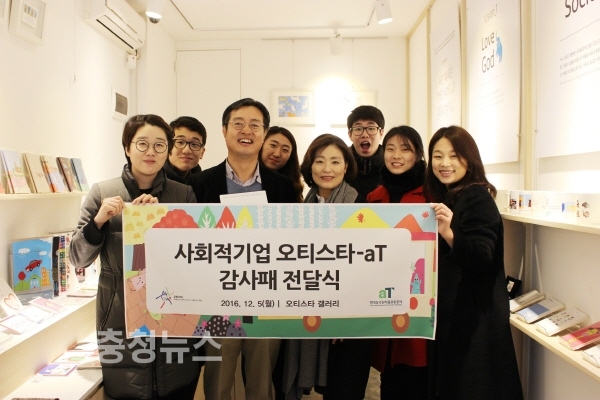 한국농수산식품유통공사(aT, 사장 여인홍)는 지난 12월 5일 사회적기업 오티스타(대표이사 이완기)로부터 자폐인의 자립 및 청년 일자리창출에 기여한 공로를 인정받아 공공기관 최초로 감사패를 수상했다고 밝혔다.
