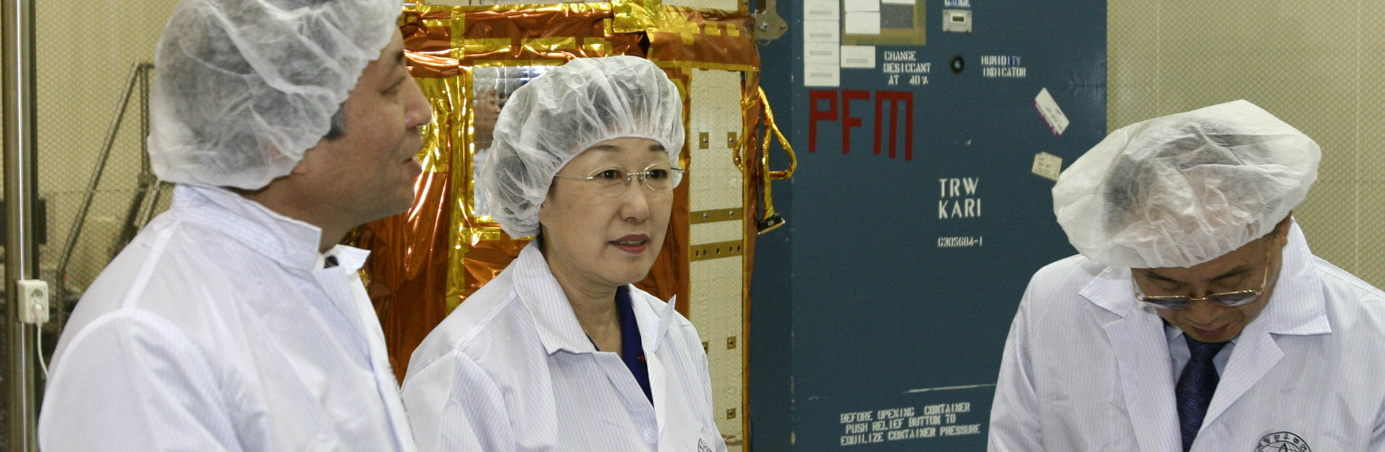 ▲ :좌에서 항우연 백홍열 원장, 한명숙 국무총리, 김우식 과학기술부부총리겸 장관(위성시험동 내)