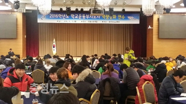 충남도교육청(교육감 김지철)은 12일 덕산 리솜스파캐슬에서 초․중․고 학교운동부 지도자 320명을 대상으로 학생선수 인권보호와 안전하고 투명한 학교운동부 운영을 위한 연수를 실시했다.
