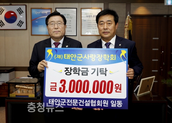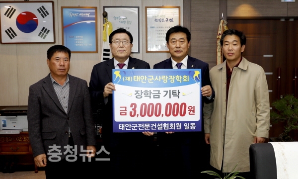 충남 태안군전문건설협회(회장 김중곤)가 태안군 학생들을 위한 장학기금을 전달하며 지역 사랑의 마음을 전했다.