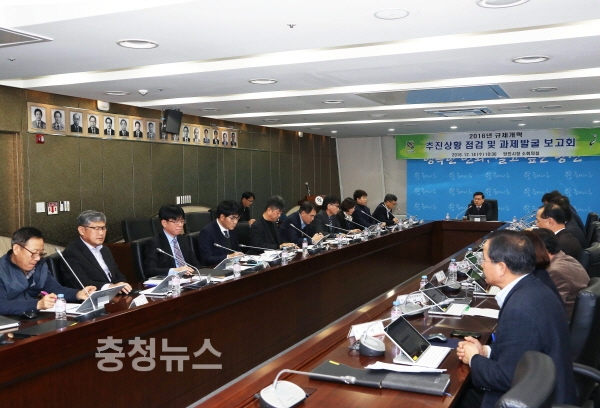충남 당진시는 14일 시청 소회의실에서 정병희 부시장 주재로 관련 부서장들이 참석한 가운데 2016년 규제개혁 추진상황 점검 및 과제발굴 보고회를 개최했다.