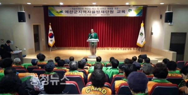 충남 예산군은 지난 13일 청소년수련관에서 자율방재단의 자긍심 고취를 위한 ‘예산군 지역자율방재단 전문교육’을 실시했다고 밝혔다.