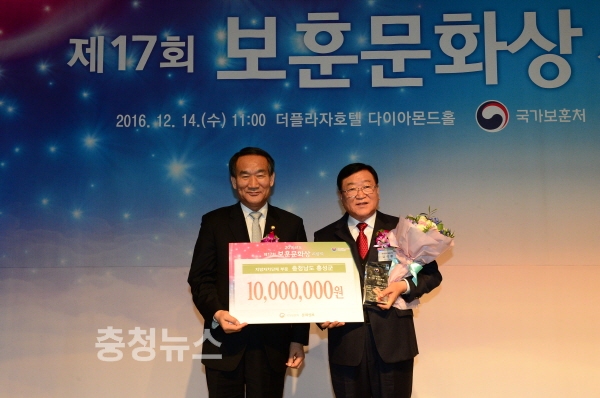충남 홍성군은 국가보훈처와 문화일보사가 공동으로 주관하는 “2016년 보훈문화상 추천 공모”에서 지방자치단체 부문에 최종 선정되어 보훈문화상을 받는 영예를 안았다.