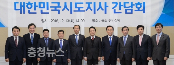 이춘희 세종시장을 비롯 박원순 서울시장, 권선택 대전시장, 남경필 경기지사, 안희정 충남지사 등 17개 시도지사들이 13일 오후 2시 국회에서 긴급 간담회를 갖고, 민생안정 및 혼란방지 대책을 논의했다.