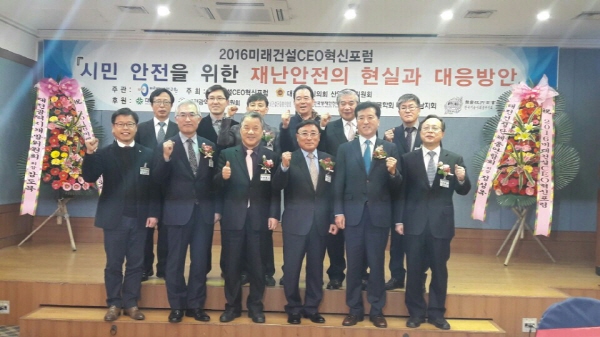 특히 건설CEO, 지자체 공무원 및 공기업 임원, 기업체 밈직원 등 150명이 참석한 가운데 지진에 대한 재난대비와 soc시설물에 대한 안정성, 내진보강 사례발표 등에 대한 연찬의 기회를 가졌다.