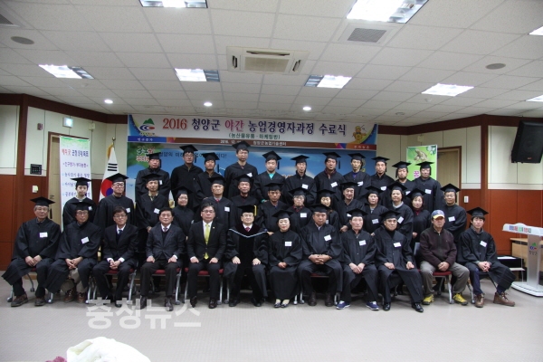 충남 청양군이 지난 14일 농업기술센터에서 야간 농업경영자 과정 수료자 43명이 참석한 가운데 수료식을 가졌다.