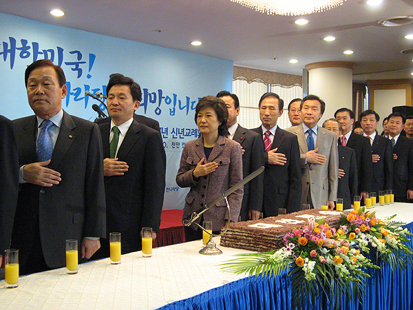한나라당 박근혜 전 대표, 이명박 전 시장, 손학규 전 지사, 원희룡 전 최고위원 등 대권주자 17일 천안 컨벤션센터에서 개최된 한나라당 충남도당 (위원장 홍문표) 신년교례회에 참석 “대선주자들은 충청권과의 신행정 도시건설문제등 각별한 인연을 강조하며 지지를 호소했다.