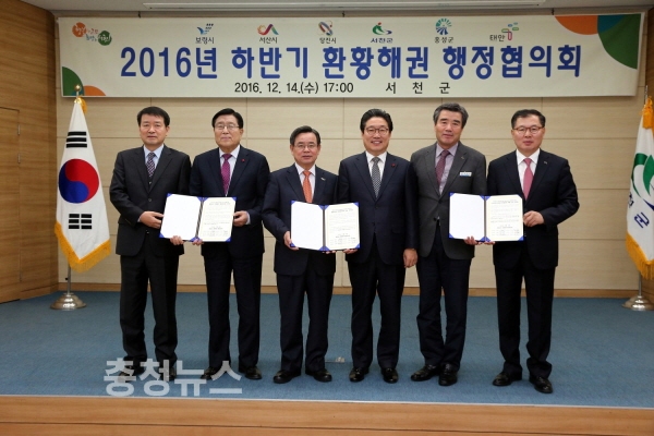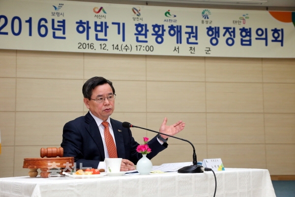 충남 서천군(군수 노박래)은 14일 군청 대회의실에서 환황해권 행정협의회 회원지자체(보령, 서산, 당진, 서천, 홍성, 태안) 단체장 및 부단체장이 참석한 가운데 자치단체간 주요 현안사항을 논의하기 위해 2016년 하반기 환황해권 행정협의회 정기총회를 개최했다.