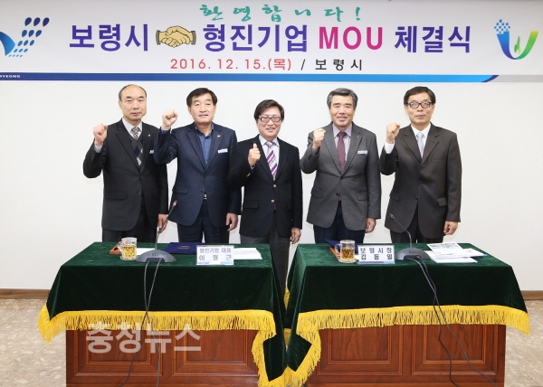 충남 보령시는 15일 오전 시청 상황실에서 김동일 시장과 이형근 대표 등 관계자가 참석한 가운데 건축용 판재 및 대형 원통기둥 석재 가공업체인 형진기업과의 투자양해각서(MOU)를 체결했다.