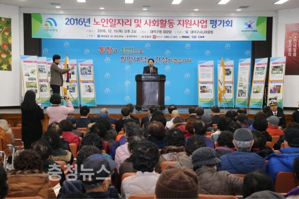 대전 대덕구 시니어클럽(관장 김문규)에서는 15일 구청 대강당에서 박수범 대덕구청장, 박종래 대덕구의회의장, 참여 어르신 등 300여 명이 참석한 가운데 어르신 사회활동지원 사업 종결평가회를 개최했다.