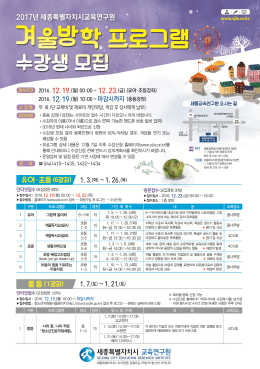 세종특별자치시교육연구원(원장 이현복)이 겨울방학을 맞아 오는 19일부터 유아·초등·중등 7개 강좌의 수강생을 모집한다고 밝혔다.