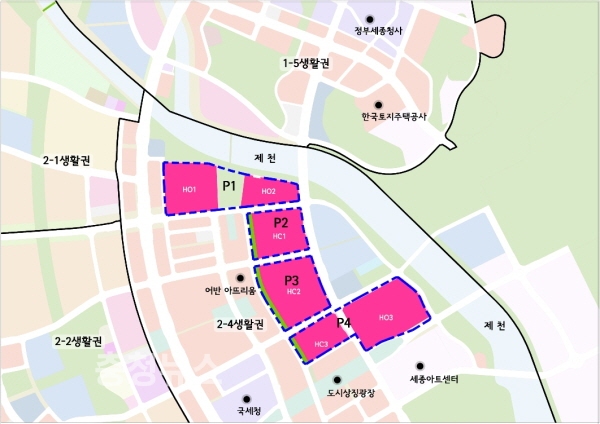 공모 대상부지는 이러한 나성동(2-4생활권)에 위치한 대단위 주상복합용지 6개 블록으로, 개발 규모는 면적 178천㎡에 총 3541세대(60~85㎡: 1772세대, 85㎡초과: 1769세대)이다.