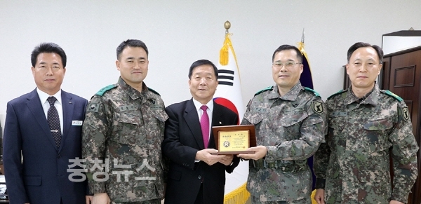 서산시의회에 따르면 육군 32사단 98연대장 박충국 대령은 이날 의장 집무실을 방문해 우종재 의장에게 장준규 육군참모총장의 감사패를 전달했다.