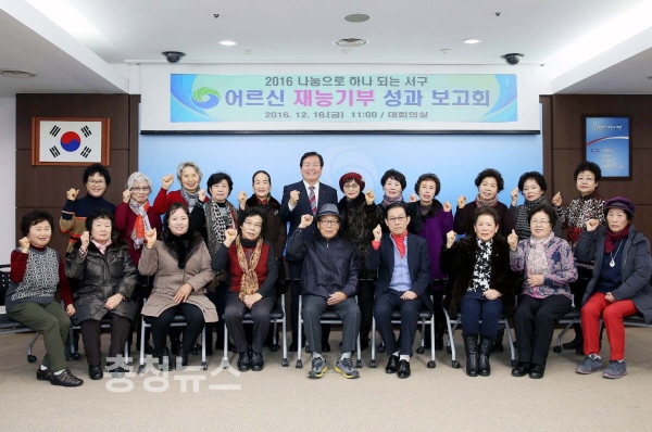 대전 서구(구청장 장종태)는 16일 구청 대회의실에서 ‘2016 나눔으로 하나되는 어르신 재능기부 성과보고회’를 개최했다.