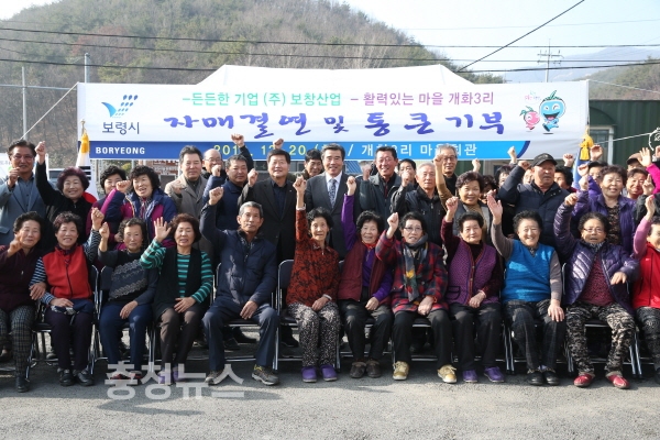 시는 20일 오후 개화3리 마을회관에서 김동일 보령시장과 송병태 성주면 개화3리 이장, 권혁영 ㈜보창산업 대표, 주민 등 100여 명이 참석한 가운데 ‘1사1촌 자매결연 협약식’을 가졌다.