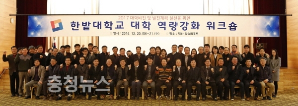 한밭대학교(총장 송하영)는 12. 20~21일 2일간 덕산 리솜리조트에서 ‘지역사회 밀착형 산학융합 특성화를 위한 대학 역량강화 워크숍’을 가졌다.