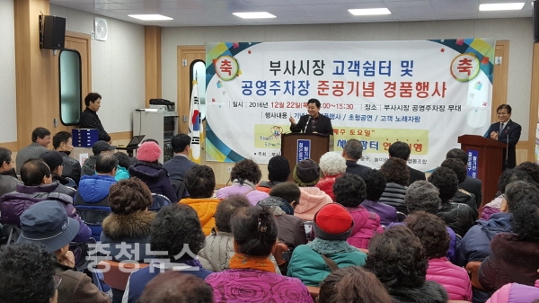 이날 행사에서는 준공 축하 테이프커팅식과 경품행사, 고객 노래자랑 등이 펼쳐졌으며, 지난 3월부터 시작된 이번 공사로 207㎡ 규모의 고객쉼터와 주차장 24면이 조성됨으로써 시장을 이용하는 고객들의 편의가 증진되게 됐다.