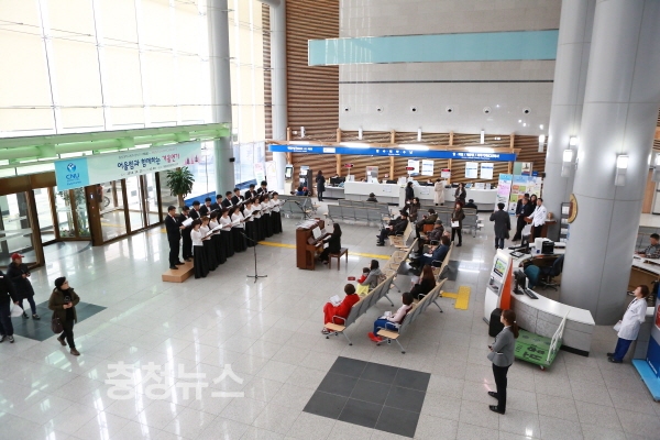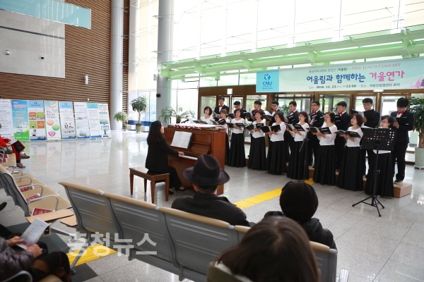 충남대학교병원(원장 송민호) 합창단 [어울림]이 12월 23일 12시 재활·관절염센터 1층 로비에서 제6회 Lunch Concert를 열었다.