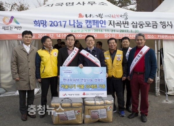 이에 앞서 지난달 25일 현대파워텍 문홍기 총무실장은 읍내동 서산시 문화회관에서 열린 ‘희망 2017 나눔캠페인’ 모금행사에 참석해 이웃사랑 성금 5천만원을 전달하고, 14일 지곡면사무소에서 열린 모금행사에 지곡면 기초수급 및 차상위계층 가정 50세대에 난방용품을 지원했다.
