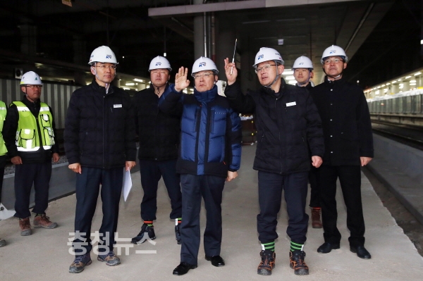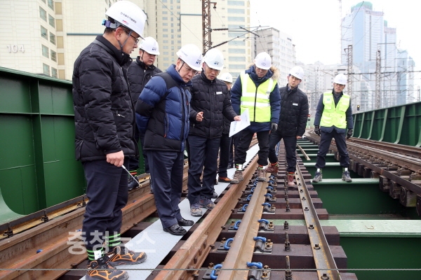 아울러 열차가 운행하고 있는 선로에서 이루어져야 하는 본 사업의 특성상 야간시간대(0시∼4시)에 열차운행을 차단한 후 작업을 펼쳐야 하는 공사 관계자들의 애로사항을 적극 청취하고, 이들에게 공정․안전․품질을 철저히 관리해줄 것을 당부했다.