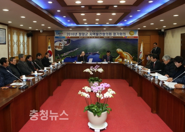 충남 청양군이 26일 오전 군청 상황실에서 이석화 군수를 비롯해 이진우 회장 등 20여명이 참석한 가운데 지역발전협의회를 열었다.