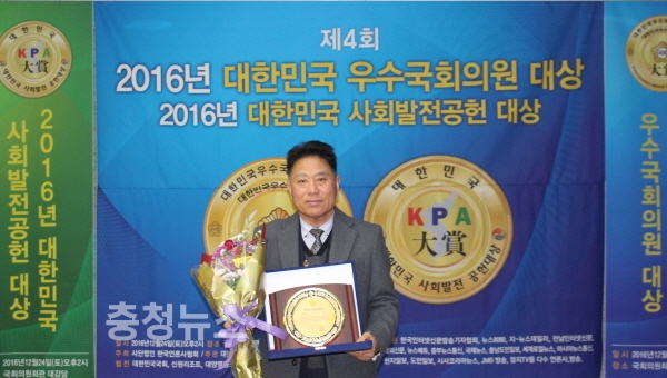 유기준 아산시의회(더불어민주당, 배방,탕정) 의원이 지난 24일 오후 3시 국회의원 회관 대강당에서 개최된 “제4회 2016년 대한민국 사회발전공헌대상“시상식에서 지방자치 의정 발전 부문 대상을 수상했다.