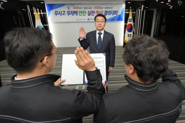 본사 임직원이 참석하여 진행된 이날 행사는 직원 대표의 안전실천 혁신결의 선서 및 안전 캐치프레이즈 선포에 이어 사장의 안전실천결의 서명과 격려사 순으로 진행되었다.