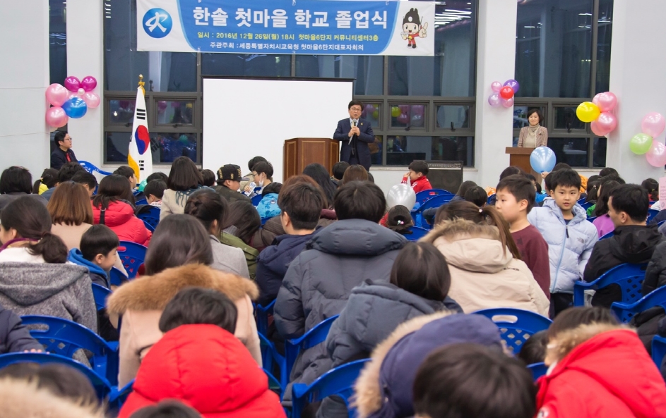 세종시교육청(교육감 최교진)이 지난 26일 첫마을 6단지 커뮤니티센터에서 한솔첫마을학교 졸업식을 가졌다.