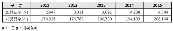 ※ 업종별 프랜차이즈 브랜드수·가맹점수 통계