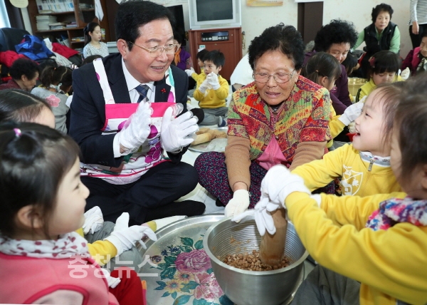 대전 서구(구청장 장종태)는 28일 봉곡동 마을회관에서 어린이집 원생, 주민 등 70여 명이 참석한 가운데 ‘전통 식문화 체험행사’를 했다고 밝혔다.