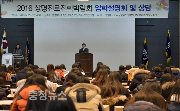 상명대학교(총장 구기헌) 입학처가 지난 27일 오후 한누리관에서 천안·아산지역 고등학생 1,2 학년과 담당교사 및 학부모를 대상으로 ‘상명진로진학 박람회’를 개최하였다.