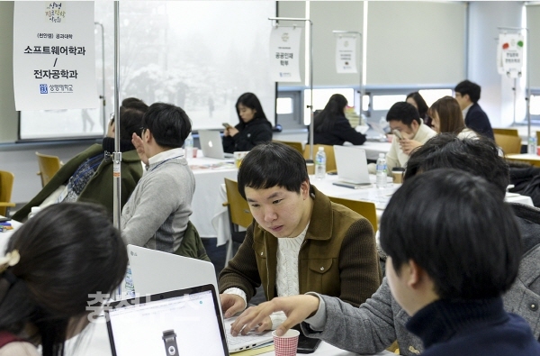 진로상담을 하고 있는 상명대 재학생들